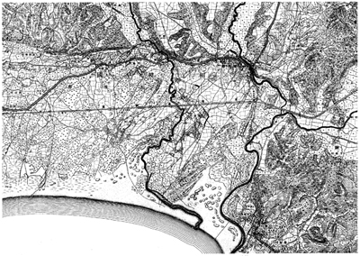 なお、一番古い基本図は、「迅速図」というシリーズの「藤沢駅」「江ノ島」で、明治16年(1883)に作成された1/20000の地形図です。